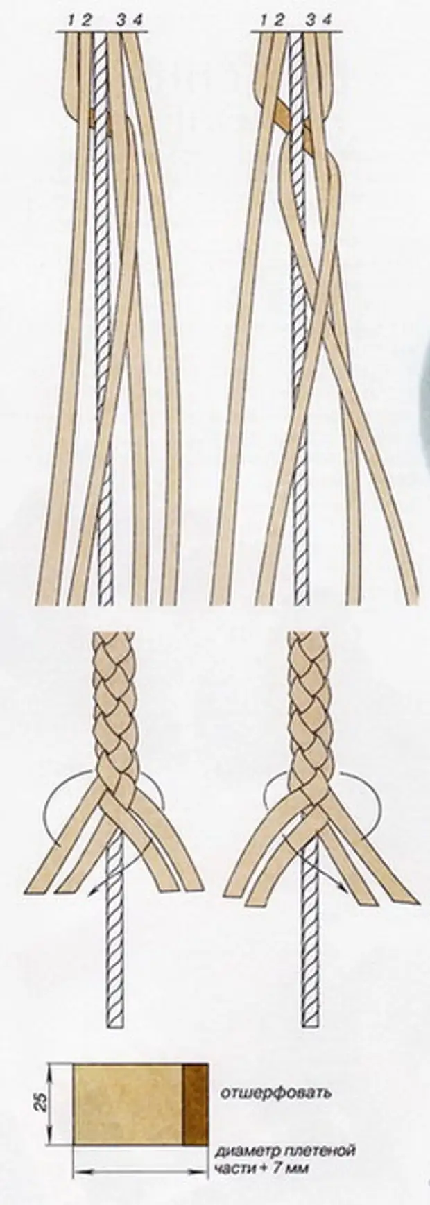 Vezměte čtyři březové šňůry dlouhé asi 2 cm. Připravte si provaz stejné délky. Dávejte pozor na průměr – od 3 do 5 mm.