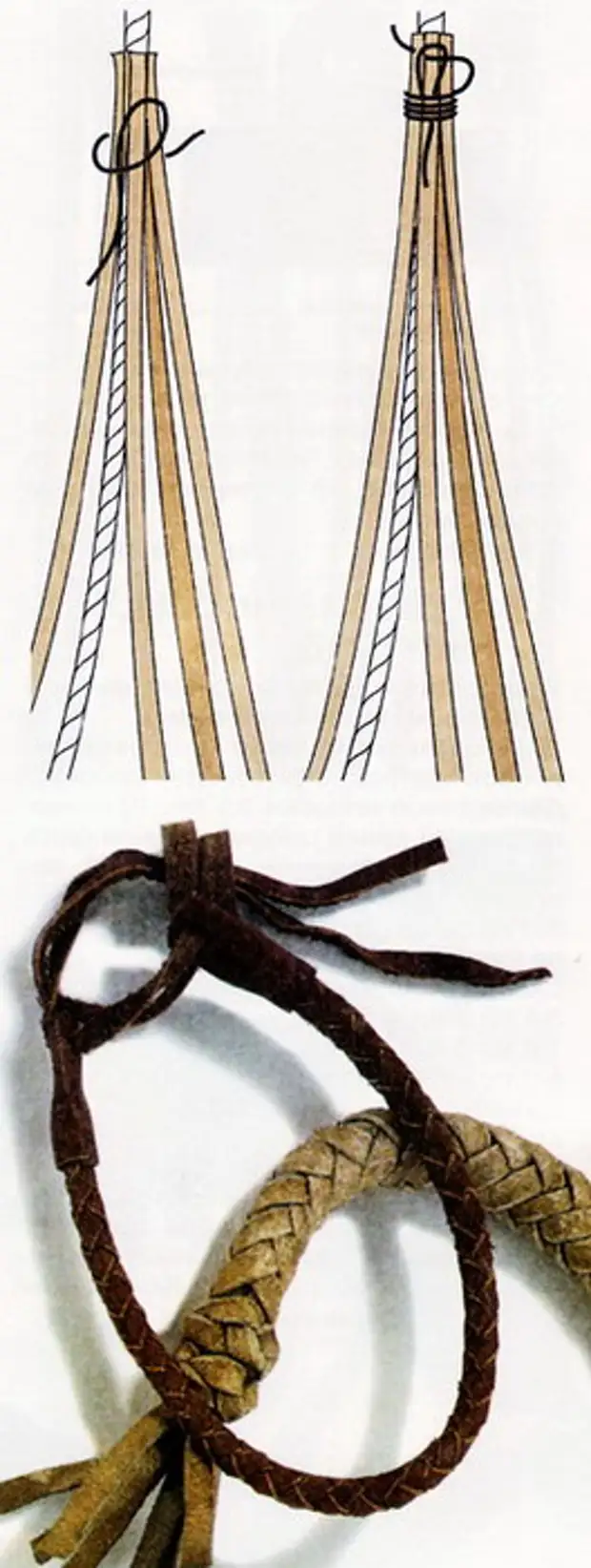 Kromě běžného tkaní existuje kruhové tkaní. Kromě tenké kůže budete potřebovat lano. To je to, co šňůry splétají.